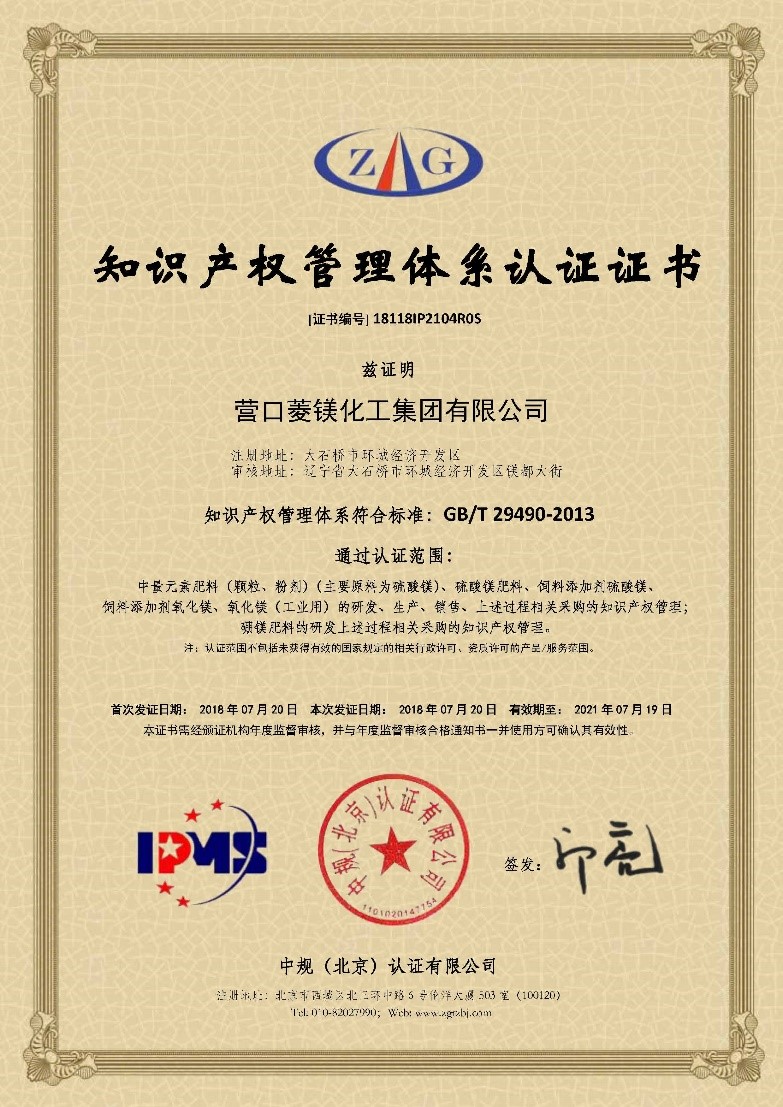 營口菱鎂化工集團通過知識產(chǎn)權(quán)貫標認證